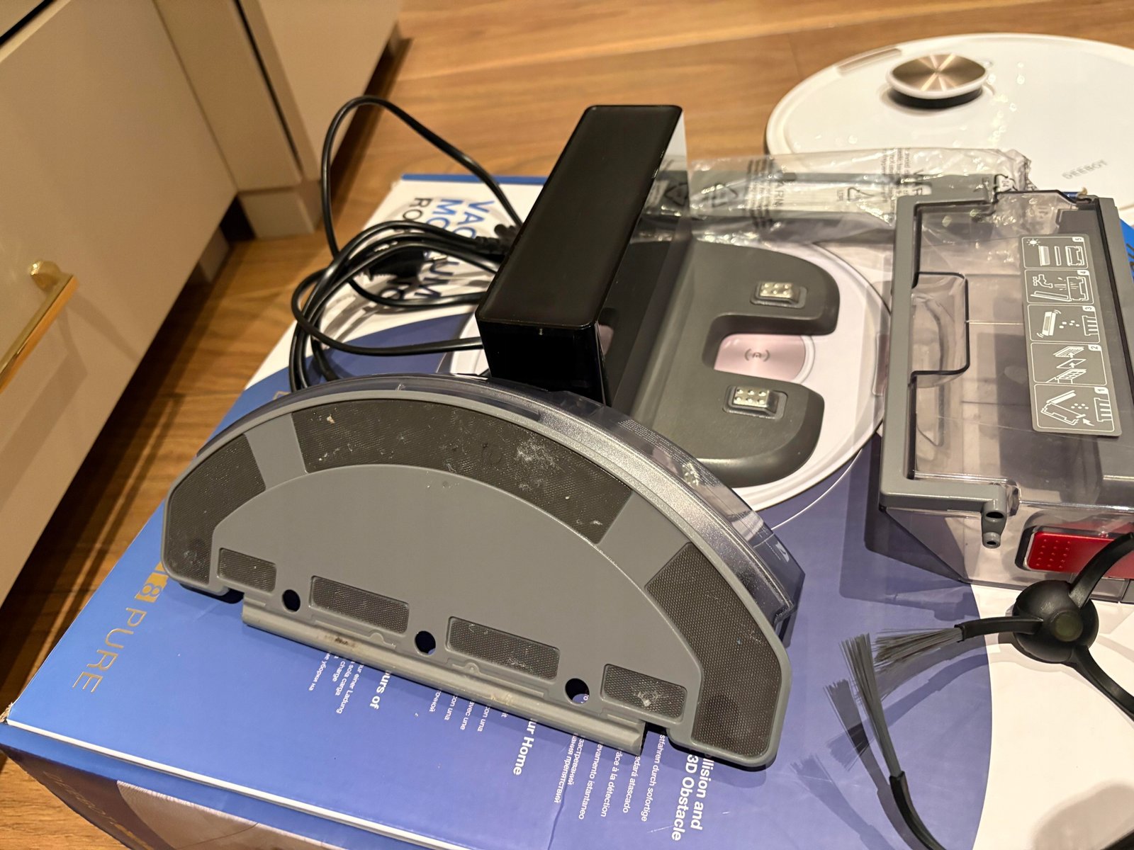 robot nie tylko odkurza i wyciera za jednym razem – wyposażony jest również we wkład zmywający zasilany elektrycznie i wibrujący z wysoką częstotliwością, aby lepiej poradzić sobie z uporczywymi plamami.